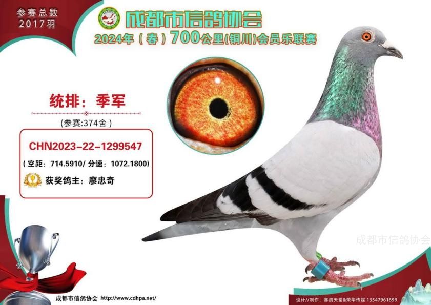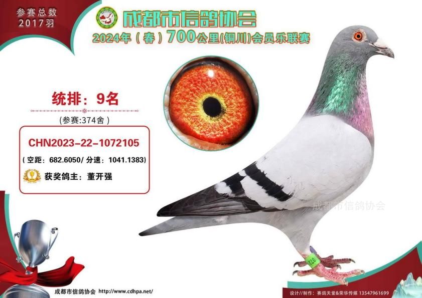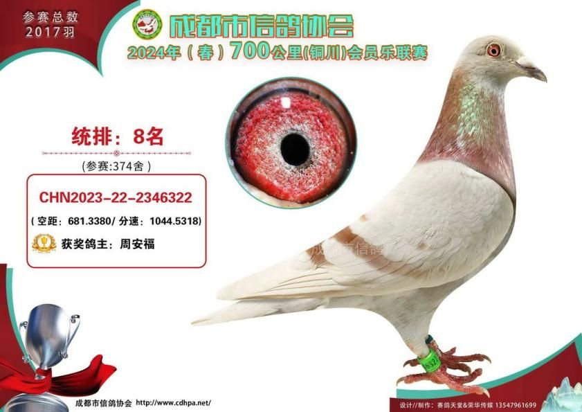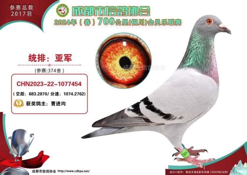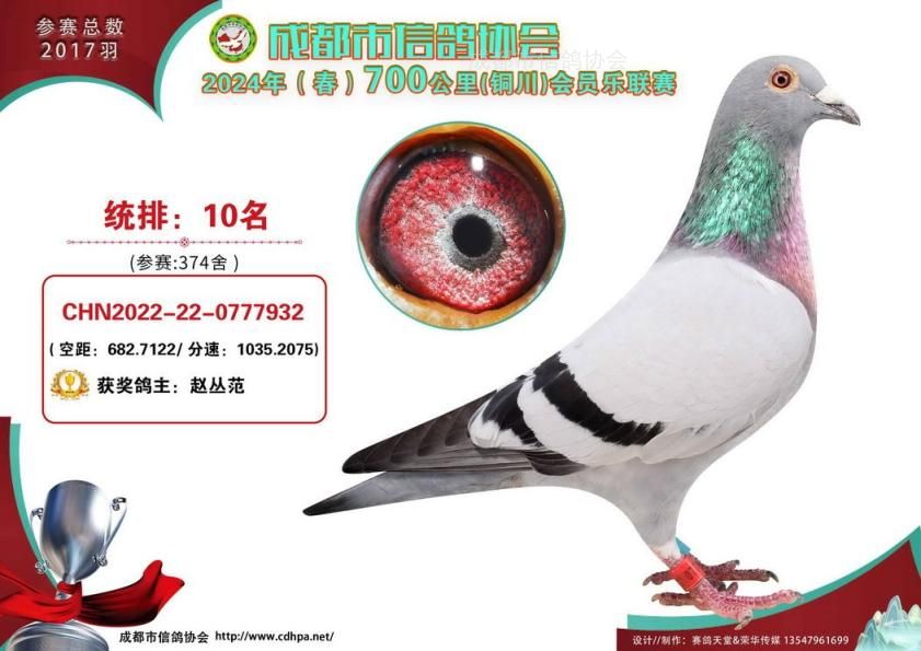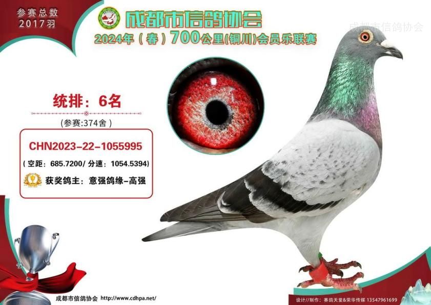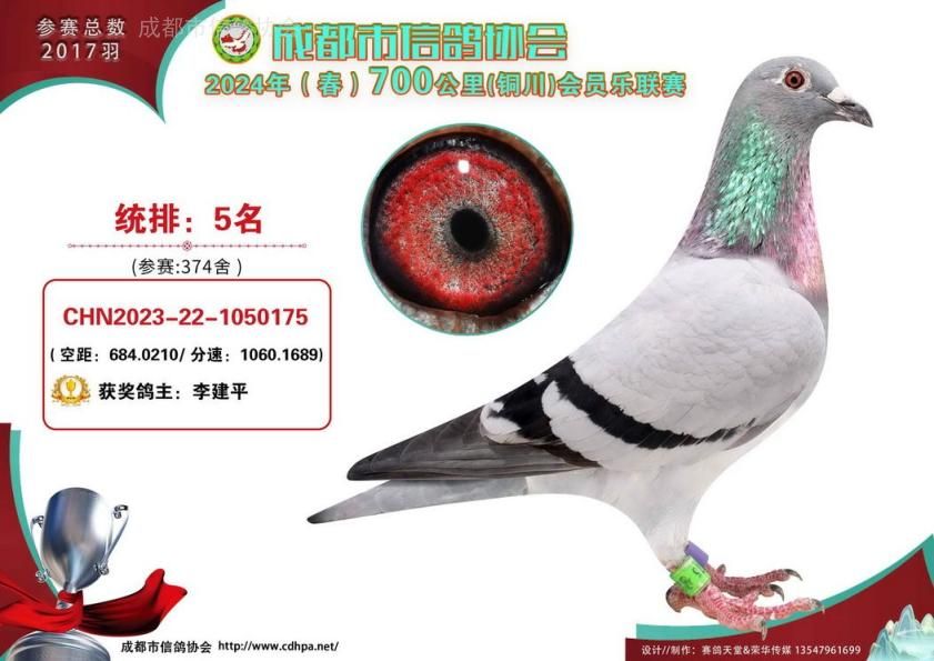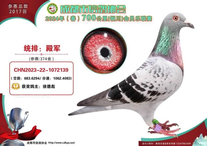 24年春成都市会员乐700公里铜川站前十名获奖鸽照片