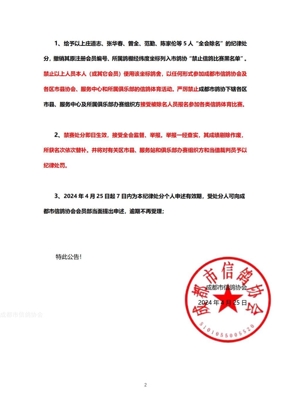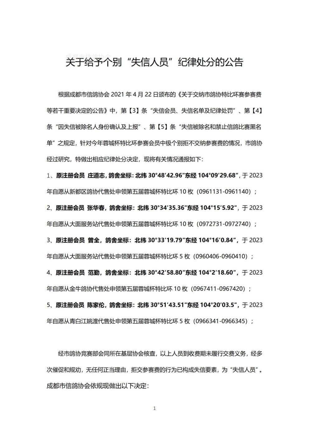关于给予个别“失信人员”纪律处分的公告