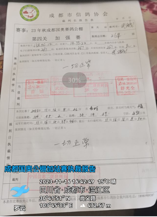 | 24 | 2023-22-1224908 | 金航鸽-谢云贵 | 成都 | 灰 | 2023-11-16 16:08:51.881 | 1063.6543 |