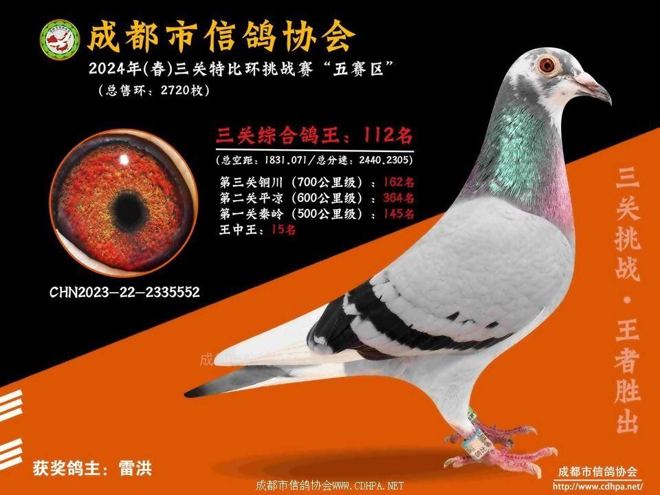 24春五赛区5-6-7百公里三关特比环第101-150名获奖鸽