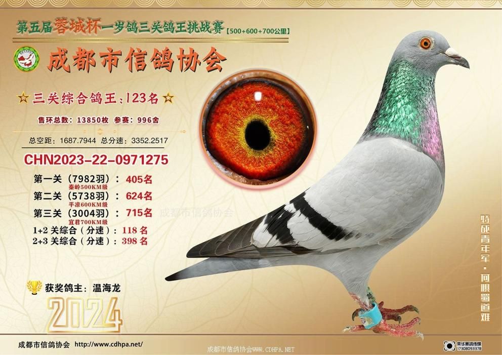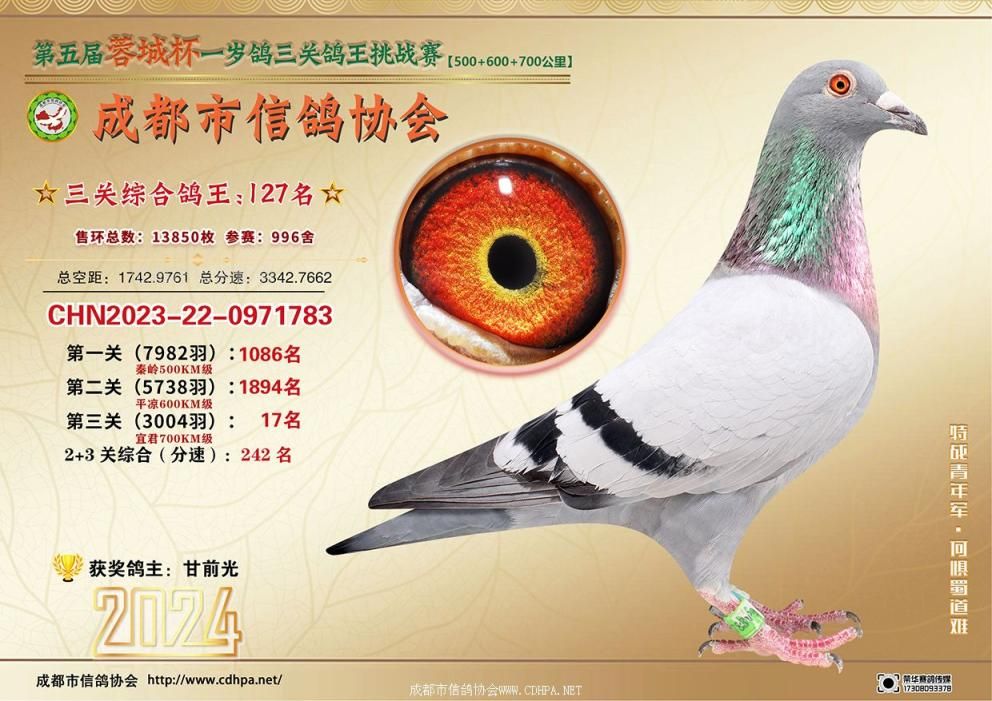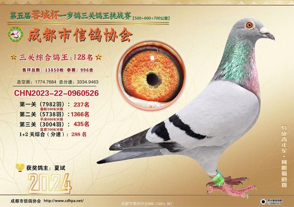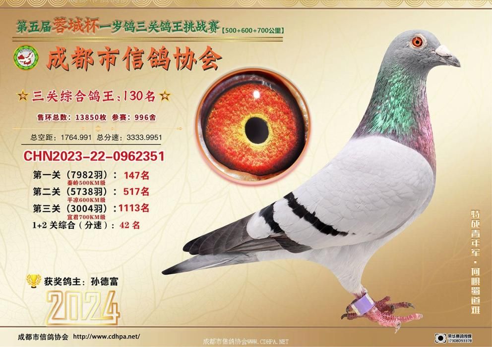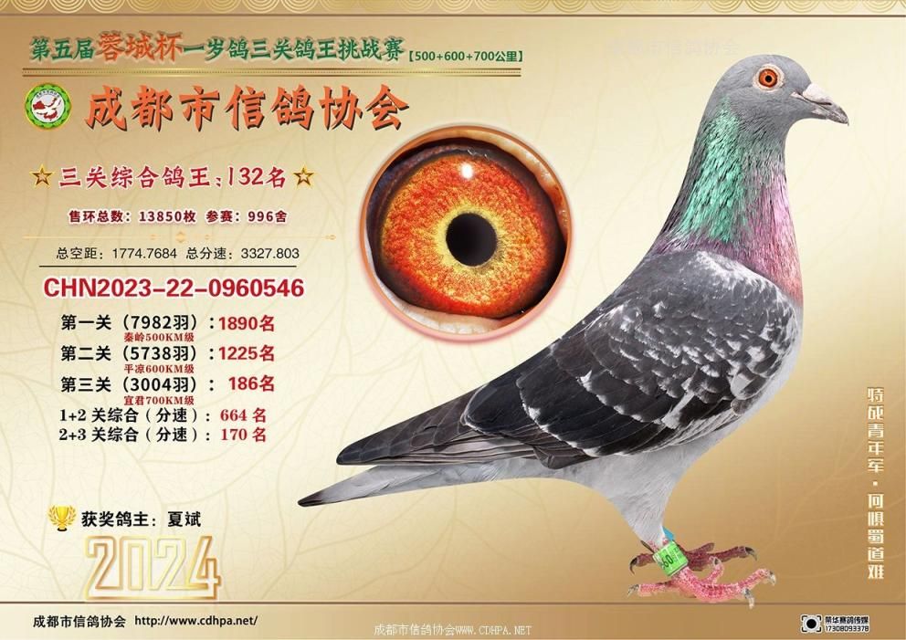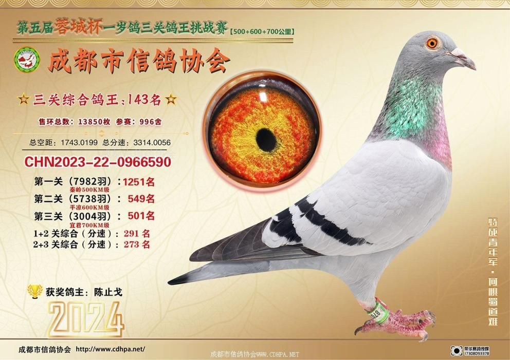 [摘要] 24春蓉城杯三关特比环挑战赛第101-150名获奖鸽