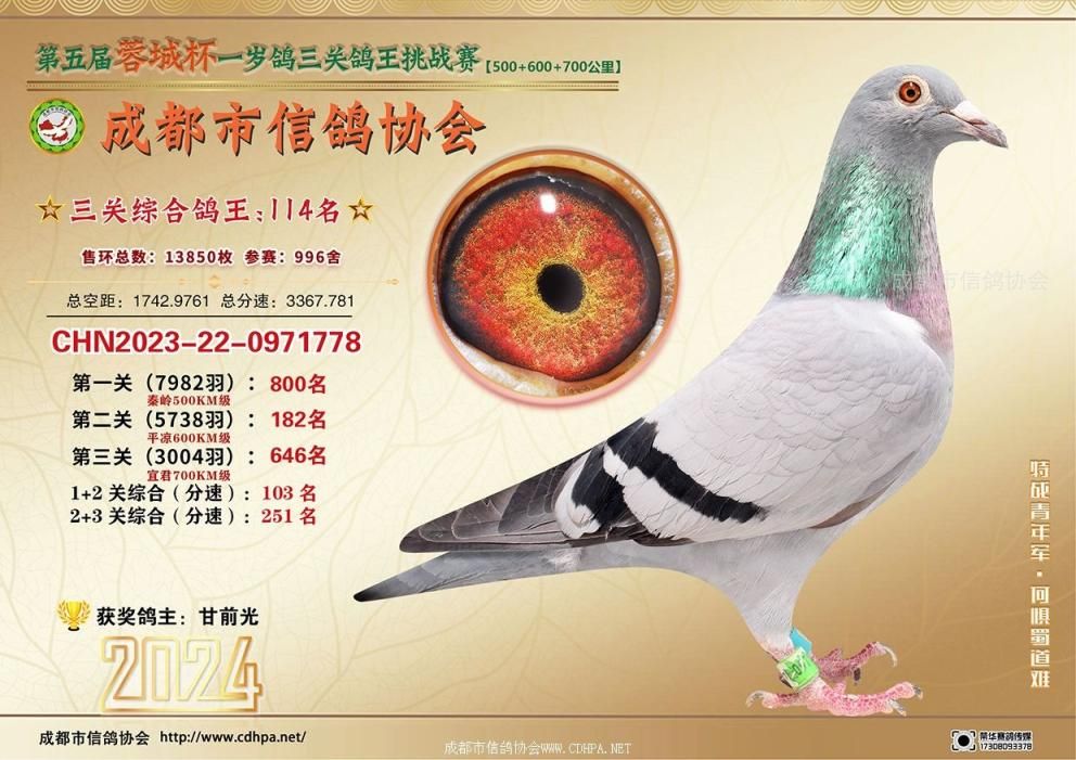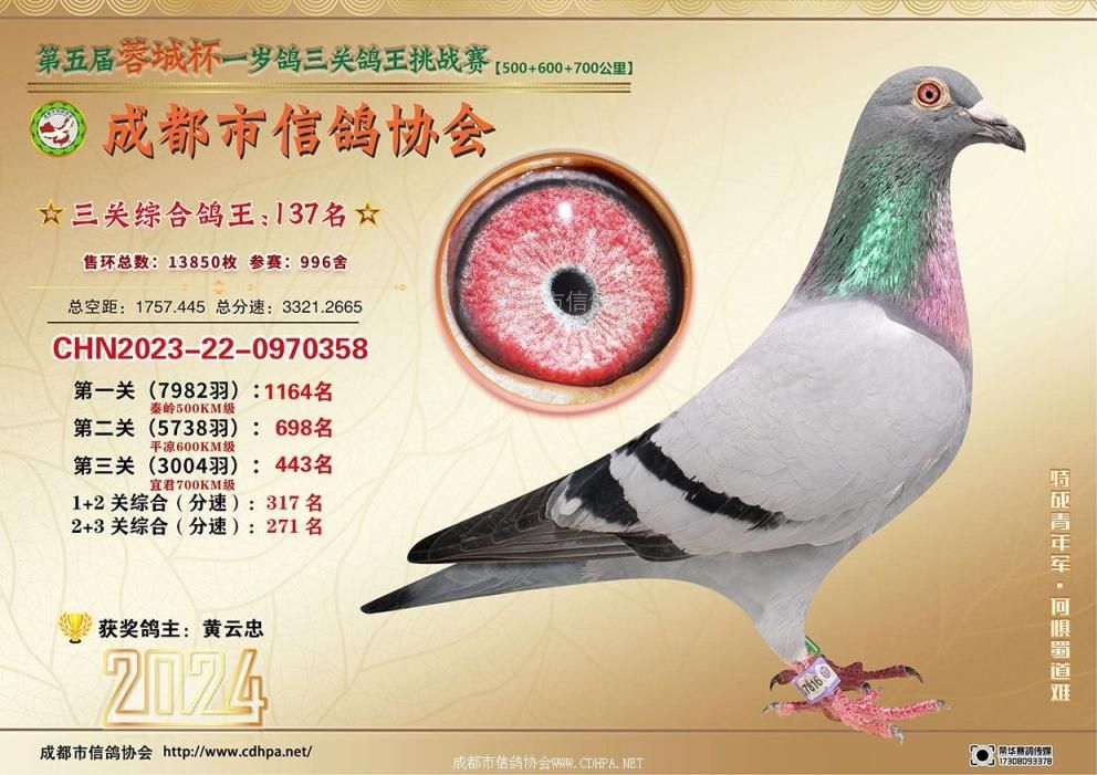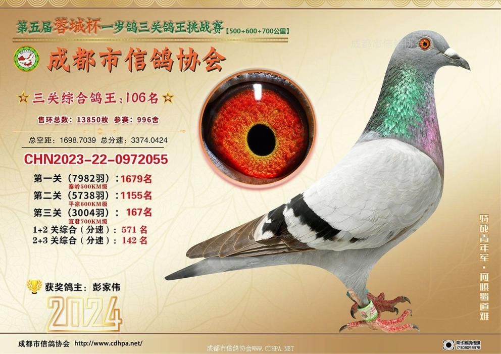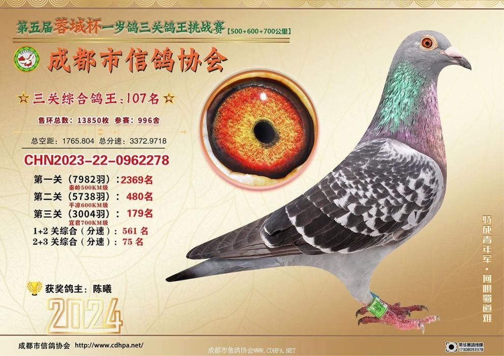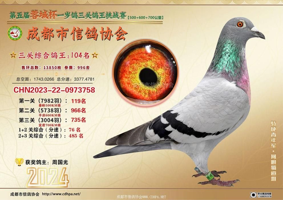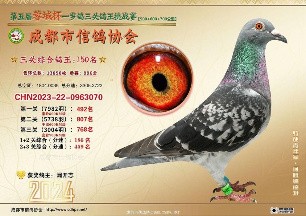 [摘要] 24春蓉城杯三关特比环挑战赛第101-150名获奖鸽