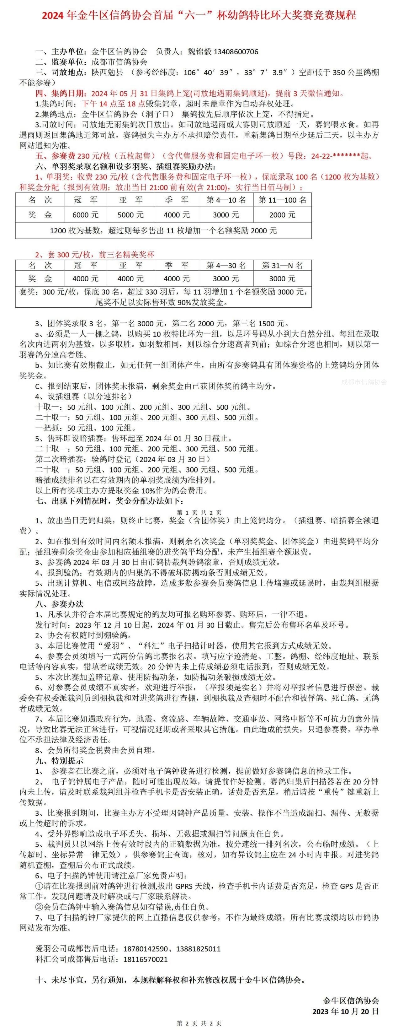 24年春金牛区信鸽协会 第四届幼鸽特比环大奖赛竞赛规程(正式版)